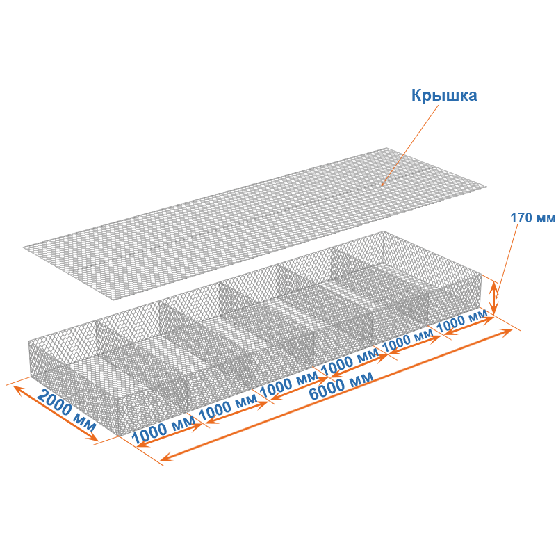 Габион матрац ГСИ-М 6х2х0,17 оцинкованный, Ø проволоки 3,0 мм, размер ячейки 8х10 см