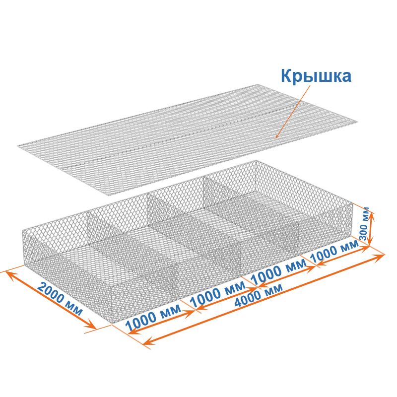 Матрасы Рено 4x2x0,3 (ячейка 80х100, проволока 2,7 мм, покрытие Цинк) применяются для защиты от эрозии.